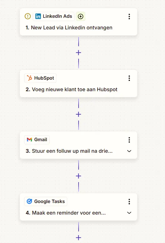 Het plannen van een afspraak kost vaak vijf mailtjes. “Schikt dinsdag?” “Nee, dan kan ik niet.” Door een tool als Calendly te koppelen aan je agenda én Zapier, kan een klant zelf een moment kiezen. Zapier zorgt er vervolgens voor dat de link in je agenda staat en dat de klantgegevens direct op de juiste plek in je systeem belanden.